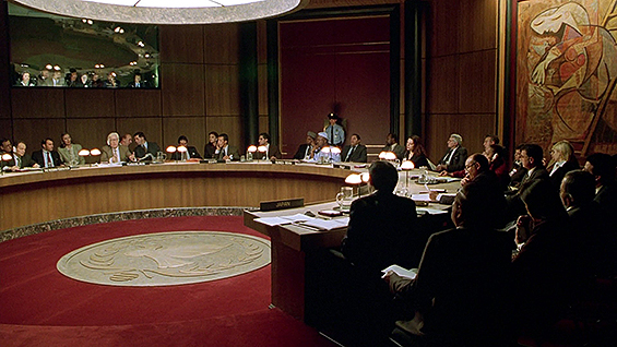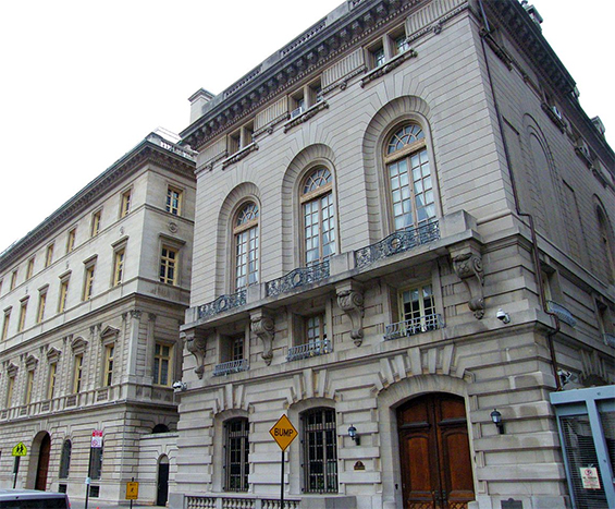 otsoNY Comments: The mansion known as the House of the Redeemer doubled for the UN Annex Building. It was originally built as the town residence of Ernesto G. Fabbri, an Italian count and associate of J. Pierpont Morgan, and his wife, Edith Shepard Fabbri, great-granddaughter of Cornelius Vanderbilt. The L-shaped Italian Renaissance-inspired house was designed by Grosvenor Atterbury, an American architect and town planner trained at L’Ecole des Beaux Arts in Paris, noted for the 1908 restoration of New York’s City Hall. The interior decoration was by Egisto Fabbri, Ernesto Fabbri’s brother, who incorporated Edith Fabbri’s collection of Italian Renaissance and Baroque furnishings and architectural fragments into his designs.