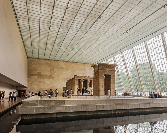 otsoNY Comments: This area of The Met is known as the Temple of Dendur Room and contains an ancient Egyptian temple that was built by the Roman governor of Egypt, Petronius, around 15 BC, as one of many Egyptian temples commissioned by the emperor Augustus.