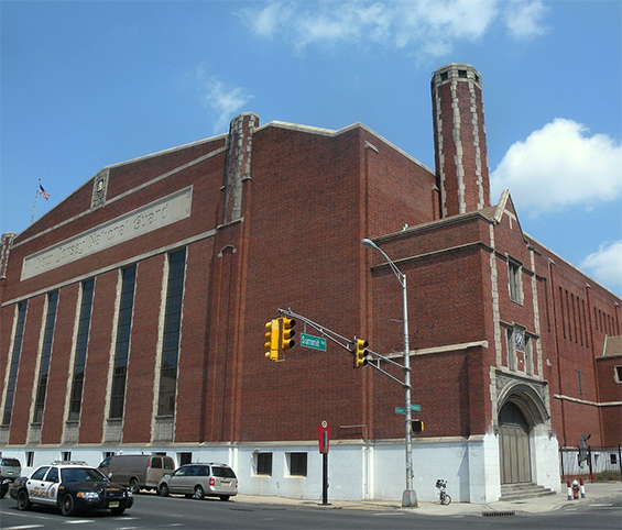 otsoNY Comments: The Jersey City Armory is located at 678 Montgomery Street near McGinley Square in Jersey City. In addition to being a military training and mustering facility of the New Jersey National Guard, the WPA era armory has long been used as a sports arena, particularly for boxing, basketball, and track and field events, and more recently mixed martial arts. Under the auspices of the New Jersey Department of Military and Veteran Affairs, the armory is leased to the city for community and political events and extracurricular sports programs. It has also been used as a film studio.