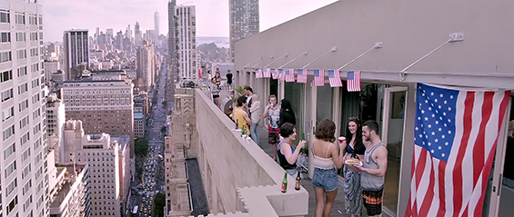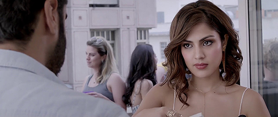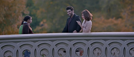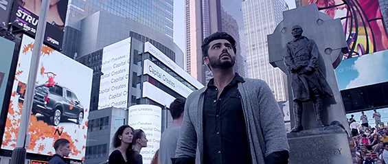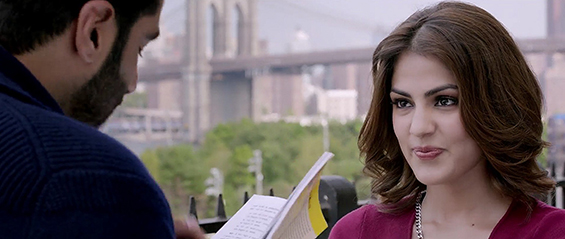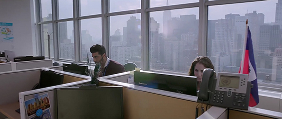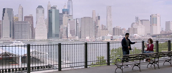 otsoNY Comments: Although the Bollywood filmmakers came to New York to shot part of the film, not everything is quite as it seems. By taking a closer look at these scenes, it is clear to see that the "Blue-Screen" effects were used. The roof-top apartment would have to be situated on 9th or 10th Avenue as the World Trade Center is clearly in line with it, though there are few tall buildings on these avenues and as such the actual roof of the apartment doesn't seem to have an end and looks more like it has been cut out, plus the camera angle itself would is ambitions. Once inside the apartment, the view to the outside do not match any New York buildings.