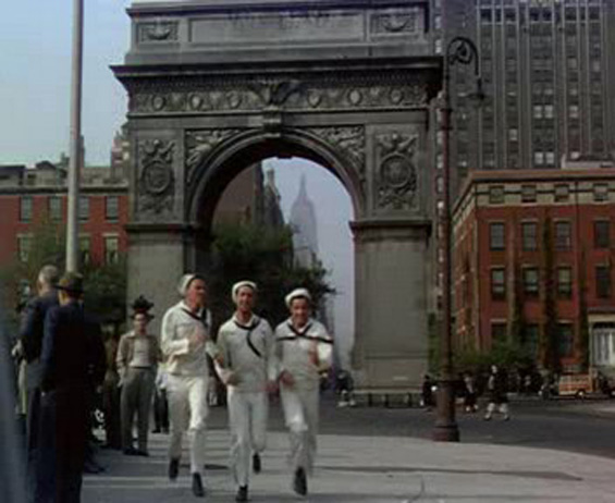 Sailors Gabey (Gene Kelly), Chip (Frank Sinatra), and Ozzie (Jules Munshin) are very excited about getting a 24-hour leave and spending it in New York, New York - a wonderful town! They are especially concerned with the female inhabitants of the city, and each finds his own to cuddle up with. Chip tries but can't resist the horny advances of a cab driver, Ozzie gladly fills the role of a lovely anthropologist's "prehistoric man," and after much desperate searching, Gabey finds the model who poses for the Miss Turnstiles advertisements, who isn't quite the glamorous celebrity he envisioned but nevertheless will do. |