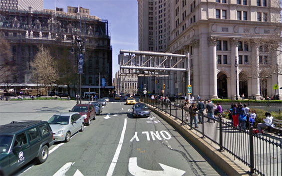 otsoNY Comments: Notice the police car drives along Centre Street in the wrong direction.