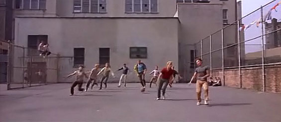 otsoNY Comments: In 1960 on a cold morning in February, the makers of West Side Story began filming along Manhattan's West 68th Street. Just beyond where they were filming stood half a block of boarded tenements destined for demolition which would soon make way for the newly constructed Lincoln Center. The makers needed a playground area and found an ideal location on 110th Street, just between West and East, and in the opening sequence of the film, the dancers would jump up on the West Side and come down on the East Side.