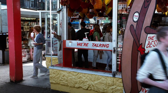 otsoNY Comments: At the time of filming the shop was actually Maya Schaper's Cheese and Antiques Shop. After it closed, it briefly became Cafe Sonatina. Now though, it is a laundromat called La Mode Cleaners.