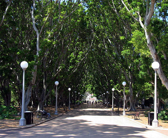 otsoNY Comments: Hyde Park, which is situated in the central business district of Sydney, New South Wales is the oldest public parkland in Australia. Around the park's boundaries lie the Supreme Court of New South Wales, St. James Church, Hyde Park Barracks and Sydney Hospital to the north, St Mary's Cathedral, the Australian Museum and Sydney Grammar School to the east, the Downing Centre to the south, the David Jones Limited flagship store and the CBD to the west. It is divided in two by the east-west running Park Street. Hyde Park contains well-kept gardens and approximately 580 trees; a mixture of Hills Figs, palms, and other varieties.