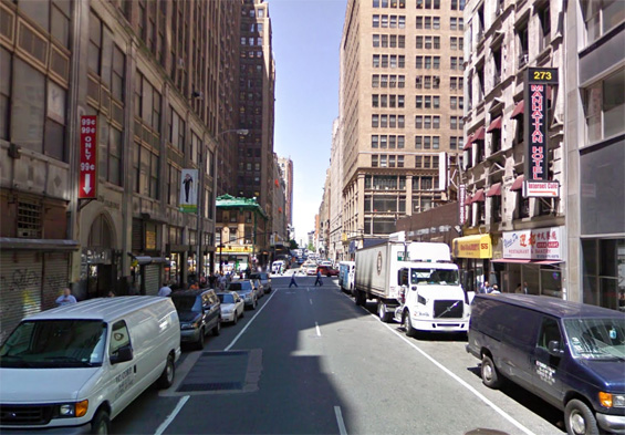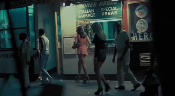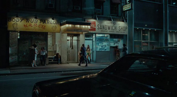 otsoNY Comments: Manhattan's West 38th Street, between 7th and 8th Avenues, stood in for the old 42nd Street where shops were converted into 1970s Times Square sex shops and strip shows.