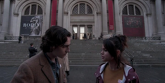 In the Yardley College, Gatsby Welles (Timothée Chalamet) learns that his girlfriend Ashleigh Enright (Elle Fanning) will travel to Manhattan to interview the cult director Roland Pollard for the college paper and he plans a romantic weekend with her. Gatsby is the son of a wealthy family in New York and Ashleigh is from Tucson and her father owns several banks. He has no attraction to study in Yardley but gambling and Ashleigh. When they arrive in Manhattan, Gatsby does not tell his parents that are planning a fancy party in the evening. Ashleigh meets Pollard and he invites her to a screening of his new film with his writer Ted Davidoff (Jude Law). Meanwhile Gatsby stumbles upon his friend, who is cinema student, and he accepts to participate in a kiss scene with Chan Tyrell (Selena Gomez), who is the younger sister of his former girlfriend. Along the rainy weekend in New York, Gatsby and Ashleigh have new experiences and discoveries. |