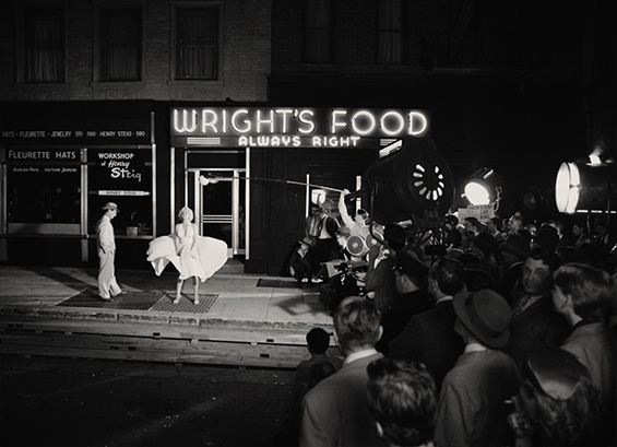 otsoNY Comments: The classic shot of Marilyn Monroe's dress blowing up around her legs as she stands over a subway grating was originally shot on Manhattan's Lexington Avenue at 52nd Street on Sept. 15, 1954 at 1 AM. There were so many onlookers whistling and cheering through the takes as Marilyn repeatedly missed her lines that the original footage shot on that night in New York never made it to the screen. The noise of the crowd had made it unusable. Billy Wilder re-staged the scene on the 20th Century Fox lot, on a set replicating Lexington Avenue, and got a more satisfactory result.