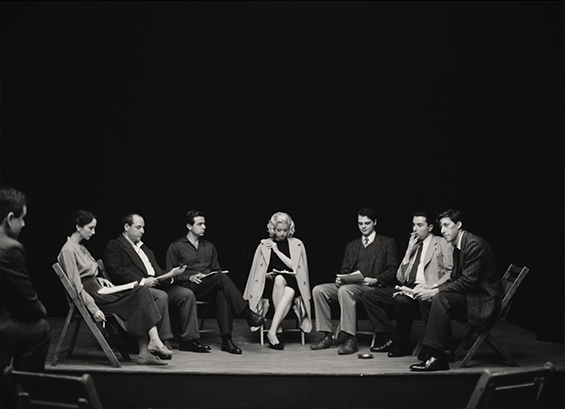 otsoNY Comments: In this scene from Blonde, Marilyn Monroe is seen at the Actors Studio located on West 44th Street in Hell's Kitchen in New York City. The The studio is best known for its work refining and teaching method acting. It was founded in 1947 by Elia Kazan, Cheryl Crawford, and Robert Lewis, and later directed by Lee Strasberg, all former members of the Group Theatre, an early pioneer of the acting techniques of Constantin Stanislavsky that would become known as method acting. Besides Monroe attending classes, other notable actors and playwrights who have shared their work at the studio include Marlon Brando, Lorraine Hansberry, and James Baldwin.
