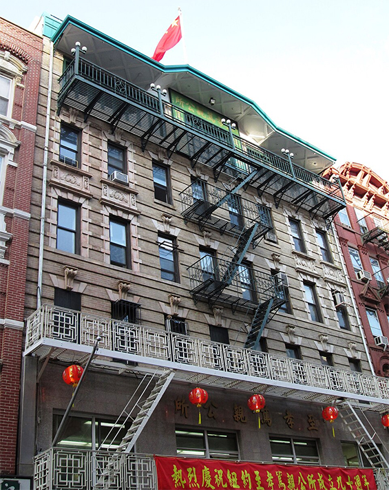 otsoNY Comments: 62-64 Bayard Street, between Mott and Elizabeth Streets in the Chinatown neighbourhood of Manhattan was built in 1910, and is the location of the Gee How Oak Tin Association of New York. The flag of China flies on top of the building. This is not a hotel.