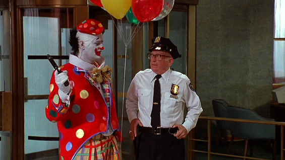 Grimm (Bill Murray), a burnt-out New Yorker, has devised an ingenious plan to escape the city he hates so much; dressed as a clown, he robs a Manhattan bank and cleverly escapes disguised as a hostage along with his accomplices, girlfriend Phyllis and best friend Loomis. However, whilst robbing the bank was comparatively straight-forward and easy, the getaway quickly turns into a nightmare, as the relatively simple act of getting to the airport to catch a flight becomes a tangled ordeal of obstructions, including confused roadworkers, conmen, mobsters, bureaucratic bus-drivers and a cabbie who doesn't speak a word of English. And all the while Rotzinger, the equally world-weary but relentless Chief of Police, is doggedly on their tail. |