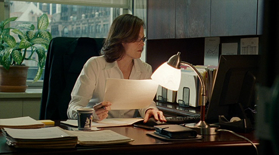 otsoNY Comments: Watch for this continuity error. When Julia's co-worker brings her a coffee to try out from his new coffee machine, he places it on her desk. The shot changes to him a few seconds later. When back to her, the coffee cup is turned 180 degrees - the handle is on the other side, the computer mouse is moved, and a stack of papers near her planner is moved. She did not move all of these things in those few seconds because she is holding some papers that she was reading when he walked into her office.