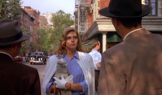 Emily Crane (Kelly McGillis) is fired after refusing to give names to a 1951 House Un-American Activities Committee, and takes a part-time job as companion to an old lady. One day her attention is drawn to a noisy argument being conducted largely in German in a neighbouring house, the more so since one of those involved is her main senator prosecutor. Starting to look into things, she gradually enlists the help of FBI officer Cochran who was initially detailed to check her out. Just as well when things turn nasty. |